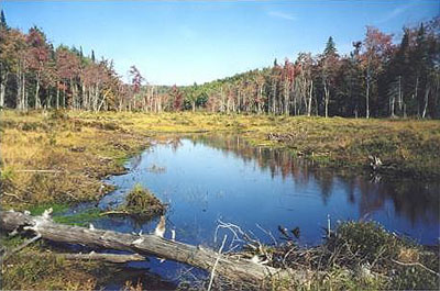Not far into the woods off Dahlia Farm Road in Monroe, Maine, Northern Pond lies surrounded by marshland and upland forest of mixed hemlock, balsam, pine, spruce, birch, oak, and maple. Fed and drained by Thurlow Brook, the pond and surrounding area stretch unbroken for more than half a mile.